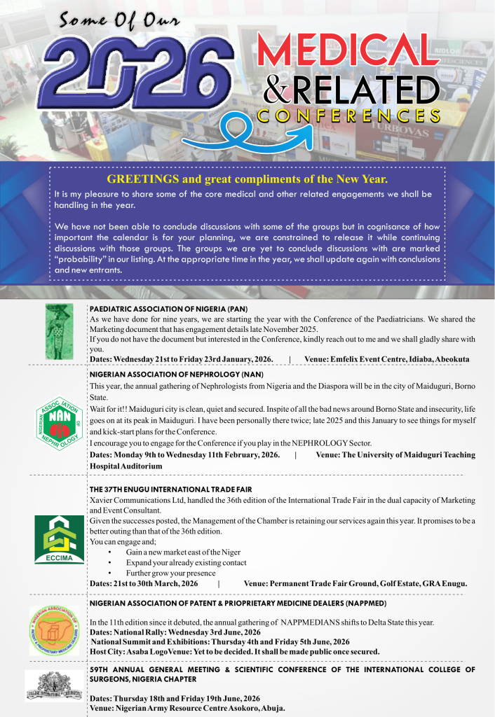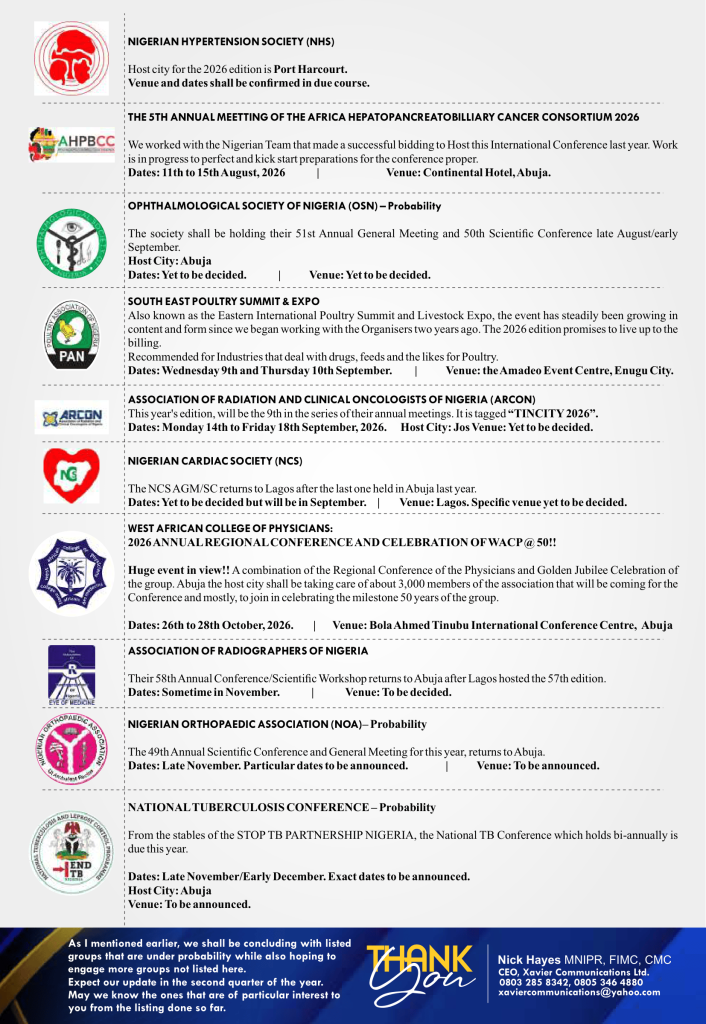 Since 2010 when we launched out in this area, we have consistently delivered for the underlisted prominent Medical Associations in the country; moving around the country and working with different Local Organising Committees: